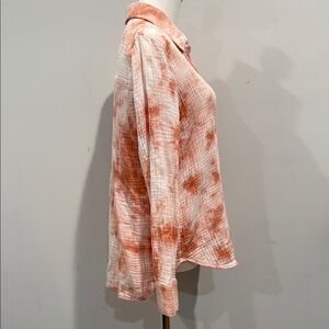 ROAN + RYAN SIZE XS White and Orange Long Sleeve Relaxed Button Down Shirt