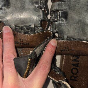 ROAN "Willa" Leather Gladiator Zip Up Sandals in a Misses size 6, fits 6.5 or 7
