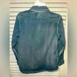 Very attractive boys dress shirt! Wore at livestock shows, lots of memories made! Unfortunately they out grew it and we have to pass it on! Intentionally distressed, if you don’t like that look, please don’t buy.