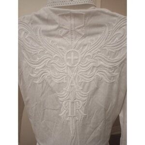 ROAR Buckle Enough Excuses Mens White Embroidered Long Sleeve Button Shirt Large