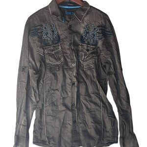 ROAR Buckle Surmountable Embroidered Western Long Sleeve Button Snap Front Shirt
