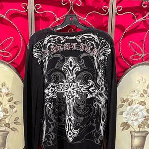 The sweater features an embroidered logo and graphic print of a Christian biker rocker theme. Its slim fit and size L make it suitable for party/cocktail, casual, and work wear occasions. The garment care is easy as it is machine washable. This Roar Men's Vitality Long Sleeve knit sweater is a must-have for those who appreciate quality and style.