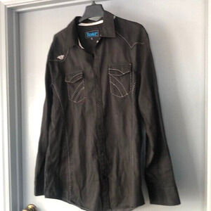 ROAR Signature Men`s Black Long Sleeve Shirt size XL logo topstitched button