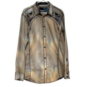 ROAR SIGNATURE Embroidered Tan Button-up Long Sleeve Shirt Men's size XL
