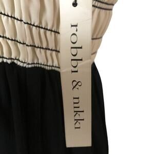 ROBBI & NIKKI Chiffon Wide Leg Smocked Jumpsuit Beige Black Strapless XS NWT