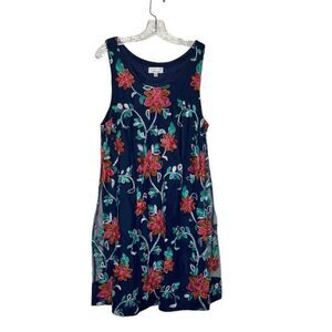 ROBBIE BEE Embroidered Blue Dress Sleeveless Sheer 2 Layer Plus Size 1X