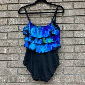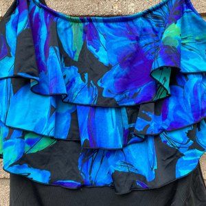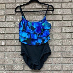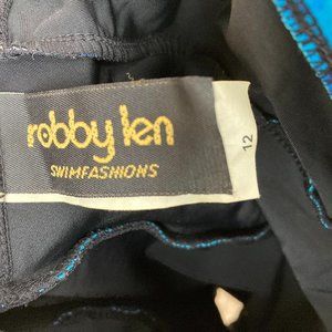 ROBBY LEN Fashions Blue Ruffled One Piece Swimsuit Size 12