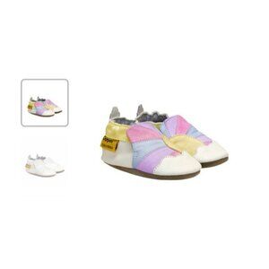 The Robeez Soft Soles Crayola Hello Sunshine Color Change booties are designed for unisex babies and toddlers aged 18-24 months. Made with leather uppers, these multicolor booties feature a stylish bootie design that is both cute and practical for little ones. The soft soles provide comfort and support for active babies who are just starting to explore and stand up. Perfect for adding a colorful touch to any outfit, these booties are a must-have for any little fashionista or trendy toddler.