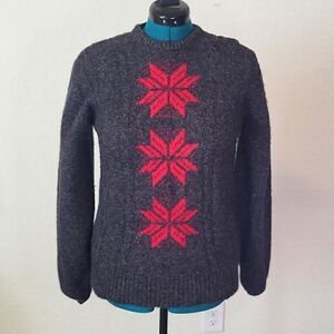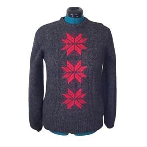 ROBERT BRUCE Wool Sweater Poinsettia Dark Grey Christmas Print Size L :