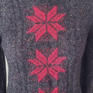 ROBERT BRUCE Wool Sweater Poinsettia Dark Grey Christmas Print Size L