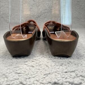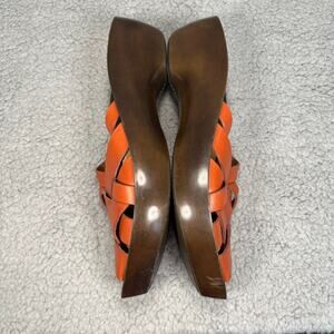 • Style: Platform Mule Clog Pointed Toe Woven Sandal Tan Leather Slip on Ecclectic Artsy Art to wear Boho Asian Unique Funky Fun Whimsical Avant Garde