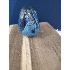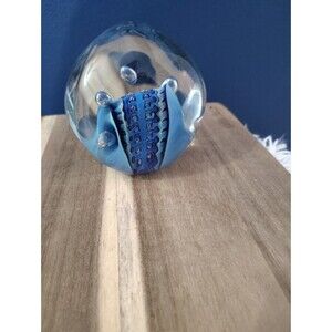 The Robert Eickholt 1991 Reptile Series Studio Glass Paperweight is a rare and vintage piece showcasing a contemporary style with a blue color and glossy finish. This hand-blown glass paperweight, measuring 3.5 inches, is an original creation from the late 20th century in the United States. Featuring a reptile theme, this art glass piece is signed by the renowned Robert Eickholt, adding to its collectible value and uniqueness. A stunning addition to any decorative pottery and glassware collection.