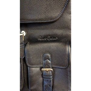 ROBERT GRAHAM BLACK WITH BLUE LINING FAUX LEATHER BACKPACK PAISLEY INSIDE LAPTOP. THIS IS A BEAUTIFUL BACK PACK. INSIDE HAS TWO SECTIONS AND THE LINING INSIDE IS BLUE AND BLACK PAISLEY. THIS BACKPACK HAS BLUE THREAD IN THE LINING ON THE OUTSIDE. THIS BAG IS IN EXCELLENT CONDITION LOOKS LIKE IT WAS BARELY USED. IT HAS ADJUSTABLE STRAPS.
