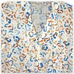 Brand new with tags. Lightweight silk crepe de chine and a soft bias cut. Ruffles at the sleeves add a touch of delicate grace.
