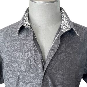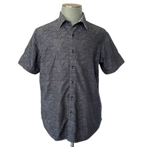 ROBERT GRAHAM Gray Cotton Short Sleeve Button Front Classic Fit Men Dress Shirt
