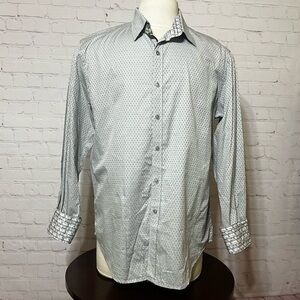 ROBERT GRAHAM LONG SLEEVE BUTTON DOWN SHIRT XL flip cuff detail GUC *stain