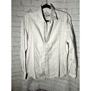 ROBERT GRAHAM MENS LONG SLEEVE BUTTON FRONT SHIRT - LIGHT GRAY WITH PATTERN (M)