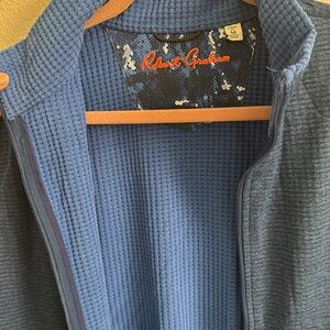 ROBERT GRAHAM Men’s Waffle Skull Embroidered Full Zip Fleece Vest Lightweight Blue Color Excellent Condition