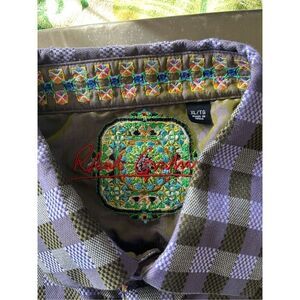 ROBERT GRAHAM Mens Size XL LONG SLEEVE BUTTON DOWN Black PURPLE SHIRT Embroidery