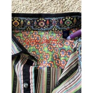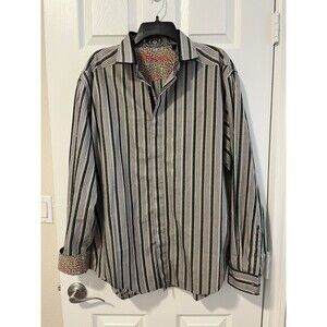 ROBERT GRAHAM Multi Striped Floral Flip Cuff Hidden Button Shirt Men’s Size XXL