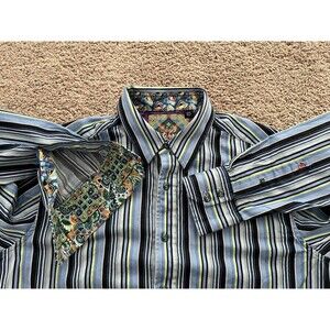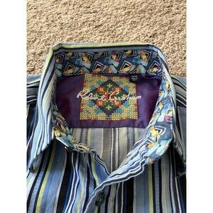 ROBERT GRAHAM Multi Striped Paisley Flip Cuff Button Shirt Men’s Size Medium M