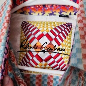 ROBERT GRAHAM Orange Blue Pattern button up shirt size M