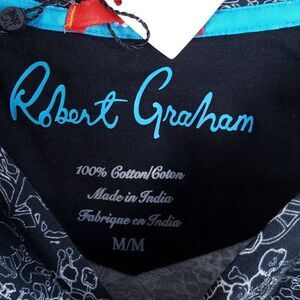 ROBERT GRAHAM Shirt Mens Medium Black Pullover Crew Floral SINFUL SKULL $135