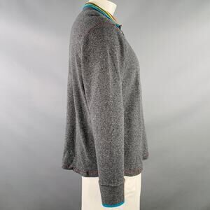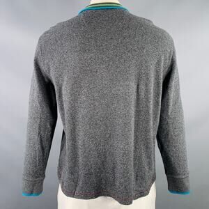ROBERT GRAHAM sweater in a charcoal grey cotton knit featuring a waffle knit design, contrasting rainbow striped collar, and half zip closure.Excellent Pre-Owned Condition.Marked: XLMeasurements:Shoulder: 18 in.Chest: 47 in.Sleeve: 23 in.Length: 25 in.