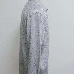 ROBERT GRAHAM long sleeve shirt..100% cotton..contrast cuff and neck in gray with black geometric..classic fit..made in India..