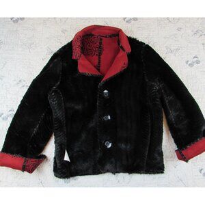 ROBERT KITCHEN Red Faux Suede Black Fur Reversible Jacket Boho Lagenlook XL
