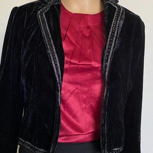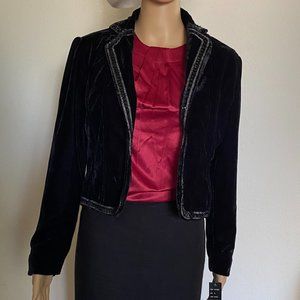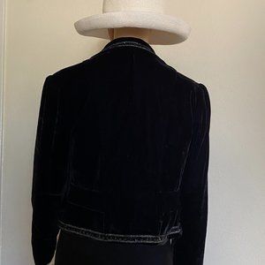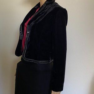 ROBERT LOUIS velour Black Velvet Embellished Cropped Jacket Blazer Size S