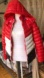 Elevate your winter wardrobe with this sleek red, white, and black urban puffer jacket. Designed for warmth and style, it's perfect for cold weather adventures. Used 1/2x & in excellent NEW condition