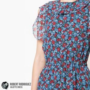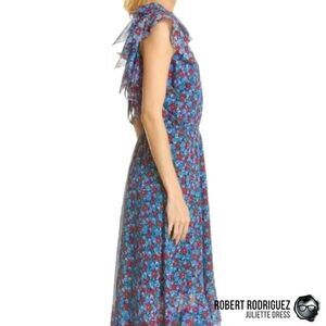Robert Rodriguez Juliette Dress In Gardenia Blue Floral Cotton & Silk Midi Women’s Size 4