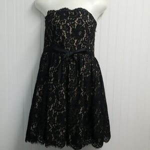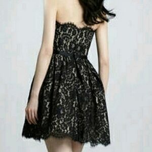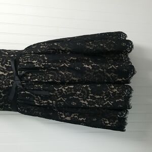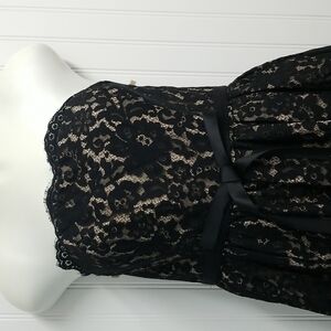 Robert Rodriguez Neiman Marcus Dress. This beautiful strapless cocktail party dress has a black lace over a beige underlay lining. Sewn in rigid forms in the bodice area for a more tailored look. Built in bra straps for the perfect fit. Ribbon belt. This dress is in GUC and worn once for an event.