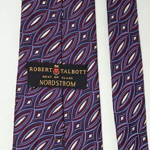 ROBERT TALBOTT BEST OF CLASS SILK TIE RED BLUE TEXTURED WOVEN STRIPE 4" X 57"