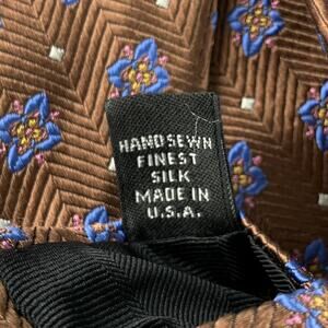 ROBERT TALBOTT tie in brown silk, featuring a blue jacquard floral pattern. Made in the USA.
