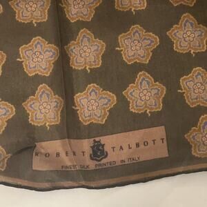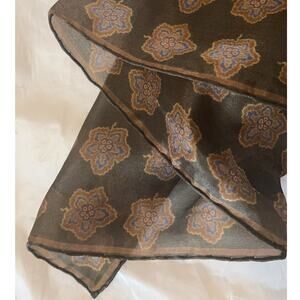 ROBERT TALBOTT Fine Silk Scarf Printed in Italy - Brown / Blu - Semi Sheer