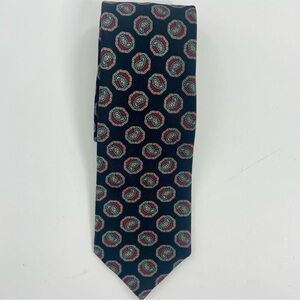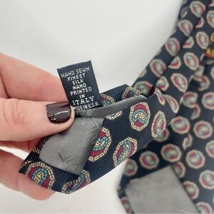 ROBERT TALBOTT Mens Classic Navy Blue Paisley Stained Glass Art Dec Silk Tie. Handmade in Italy and has pops of burgundy and cream in the tie print. No visible flaws. Classic quiet luxury academia oxford style stripe neck tie. In excellent barely worn condition. No visible flaws.