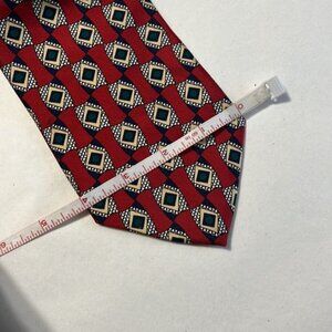 This Robert Talbott silk tie is a standout piece in a bold red color, adorned with a sophisticated geometric design. Measuring 58"x4", it adds a distinguished touch to any ensemble.