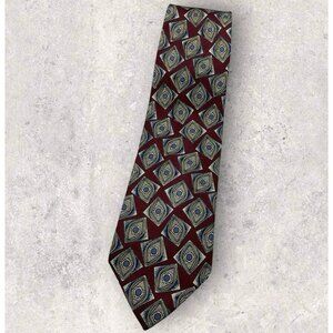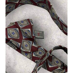 ROBERT TALBOTT Silk Tie USA Burgundy Ivory Purple Geometric W:3.7" EUC