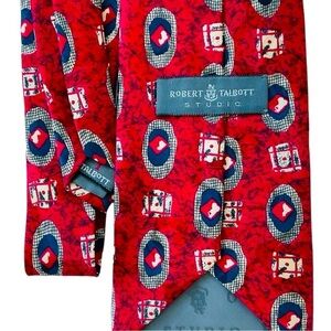 ROBERT TALBOTT Studio Men's Silk Necktie Designer Geometric Red Beige Blue EUC
