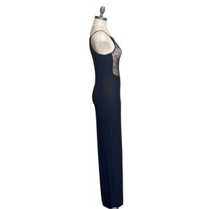 ROBERTA BLACK EVENING GOWN SHEER SIZE SMALL FRONT SPLIT VTG 80’s