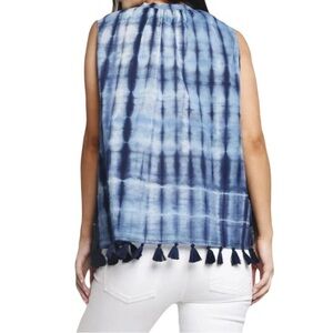 ROBERTA ROLLER RABBIT Indigo Idryss Malini Top Tie-Dye Sleeveless Top Tassels Sm