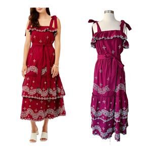 ROBERTA ROLLER RABBIT Peonia Embroidered Eleanor Dress Sleeveless Cotton Large