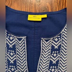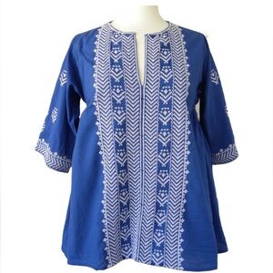 Gorgeous Roller Rabbit embroidered royal blue and white the tunic in great preowned condition! No flaws to note. Love the slight ruching on the sides and this top is 100% cotton!