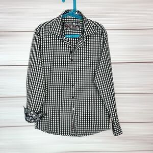 ROBERT GRAHAM Boy’s Button Up Shirt Cotton Plaid Contrast Cuffs M (10-12)