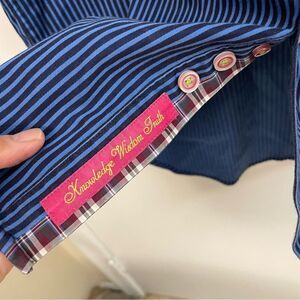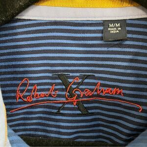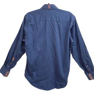 ROBERT GRAHAM PINSTRIPED BLUE BUTTON DOWN COLLARED LONGSLEEVE TOP SZ medium