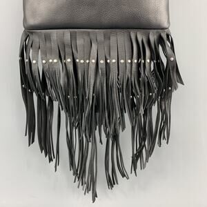 ROBERTO CAVALLI Black Leather Studded Fring Bucket Backpack