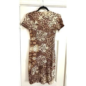 ROBERTO CAVALLI Leopard Floral Animal Snake Print Dress Gold Python Hardware - M