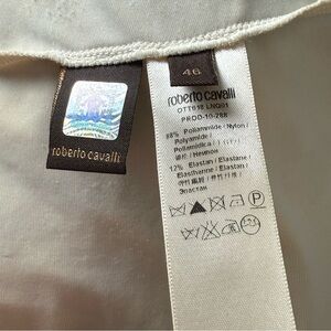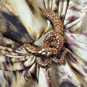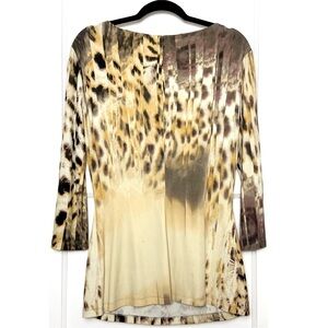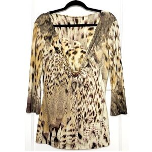ROBERTO CAVALLI Leopard Print Plunge V-Neck Gold Snake Brooch 3/4 Sleeve Top L